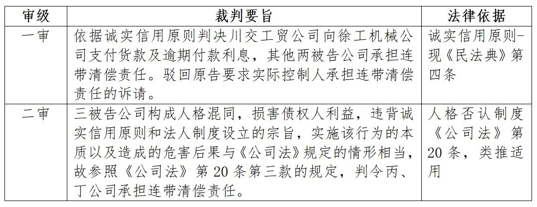 需要注意的是本案中一审、二审法院尽管实质上都否认了对关联公司的法人人格进行了横向的否认,但是裁判适用依据具有较大差异,二审法院的裁判方式也标志着关联公司的横向法人人格否认制度横空出世。